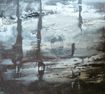 2019Landschap figuratie met bister en acryl op stevig papier.