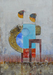2013Twee personen aan elkaar verbonden kijken vooruit en eentje binnen de figuur (met tafeltje) kijkt terug. Gemaakt in acryl.
