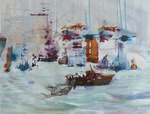 2015Suggestie van schepen en allerlei activiteiten in een haven. Gemaakt van acryl