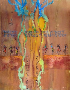20204 werkstukken op kalligrafische wijze gemaakt, met acryl, inkt op papier.
